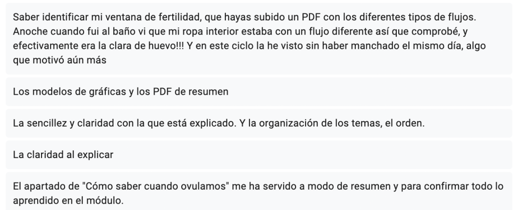 Tendrás acceso a nuestra academia privada donde encontrarás vídeos con explicaciones claras y directas al grano para entender cómo funciona tu ciclo menstrual y cómo identificar tus días más fértiles.