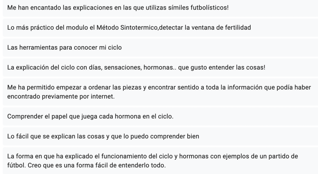 Como ves, conocer tu ciclo y todo lo que aprenderás en esta formación va mucho más allá de registrar tu regla para conseguir un embarazo.